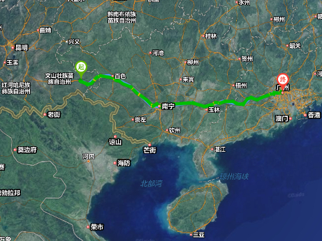 Distance from BaBao to Guangzhou (c) Baidu 2016